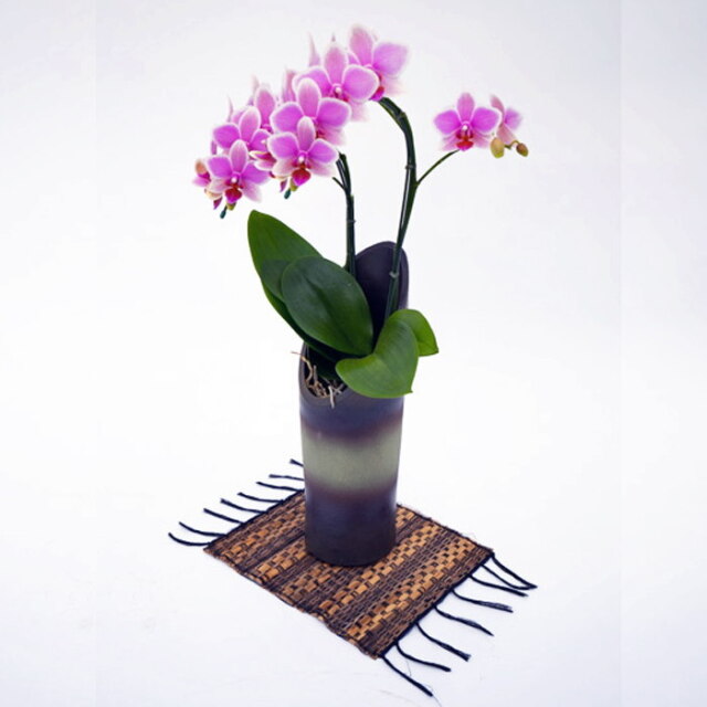 この和鉢「かぐや」は従来の鉢にとらわれない、その独特の形状で、ただそこに置くだけで上質な和の空間を演出する事ができます。窯元はもうひとつの和鉢「まどか」と同様に三河の窯元「豊繁」(とよしげ)の作品です。すべて職人による手作りでひとつひとつ心をこめて仕上げた一品です。オーキッドフジタさん考案の和鉢を使用させていただいております。敷物付きです。