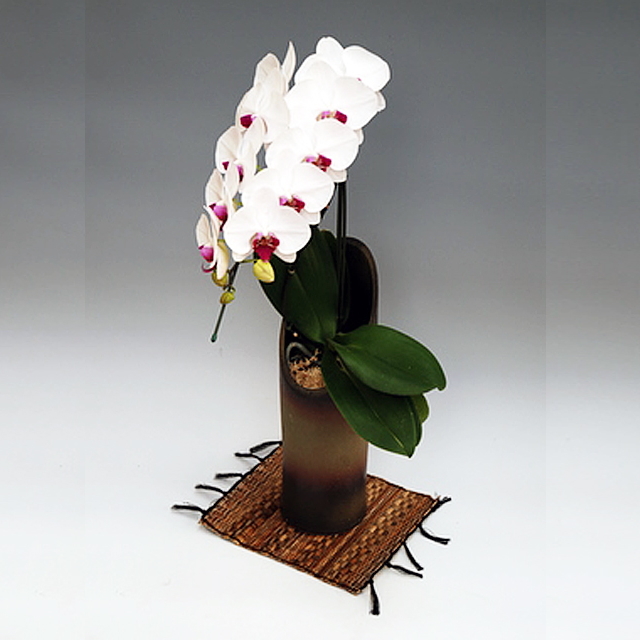胡蝶蘭とのバランスを考慮した高さ、和の色合いを引き立てる色彩。