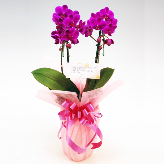 品評会で数々の賞を受賞している胡蝶蘭です。とても花持ちが良く、ビロードのような濃いピンク色をした胡蝶蘭です。予算的にもお求めやすく、とても人気の有る紅色の胡蝶蘭です。ご希望の色でラッピングをしてお届け致します。メッセージカード、立札ご希望の場合は注文フォームにて記載欄にご記入下さい。無料にてサービスさせて頂きます。