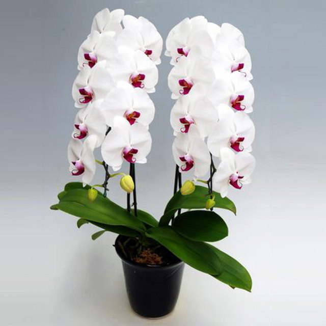 胡蝶蘭は森田洋蘭園様で丹精込めて育てられた一級品です。こちらの生産者様は、洋蘭本来の美しさと生命力を届けたいと、1971年創業以来40年以上に渡り職人として、また胡蝶蘭のオリジナル品種から苗作りまで、輸入物の約倍の期間をかけて国産にこだわりぬいた胡蝶蘭を生産されています。