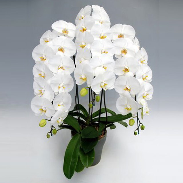 大輪の胡蝶蘭です。どのようなシーンにも最適な白色の胡蝶蘭です。輪数が35輪前後の胡蝶蘭ギフトの定番クラスです。
