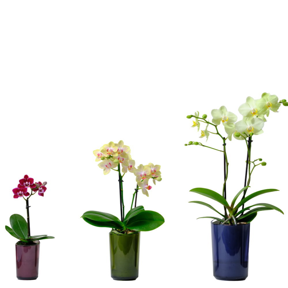 ミニ胡蝶蘭 1本立ち ピンク系 イエロー系 花色が選べる アクアポット 2.5号鉢 プティBOX入り 椎名洋ラン園
